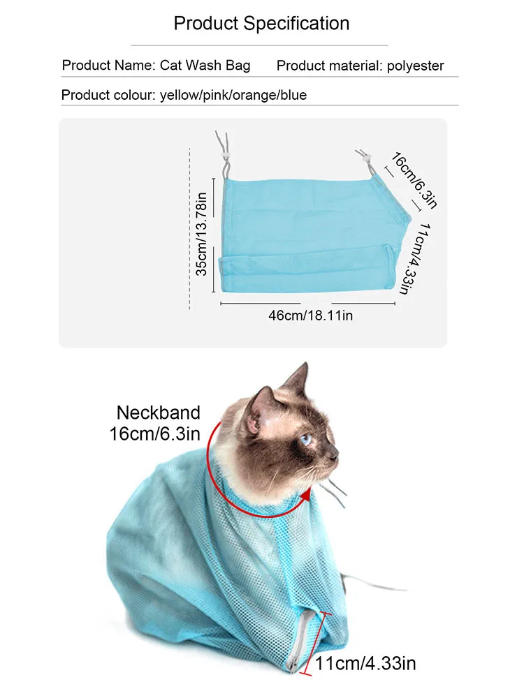 Cat Bathing Bag,Breathable Mesh Anti Scratch Cat Groom Bath Bag Adjustable Cat Grooming bag For Bathing Nail Trimming